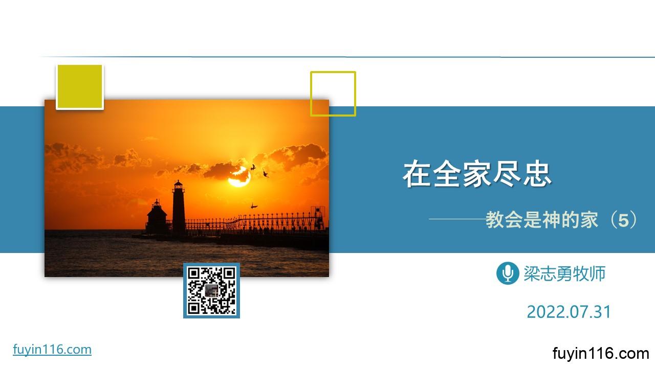 在7月31日,我们继续分享《教会是神的家》系列信息的第五讲: