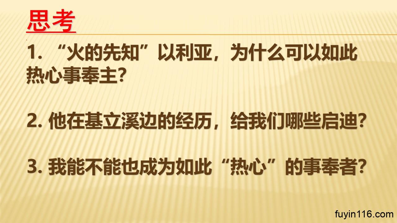 愿感动以利亚的灵,加倍地感动每一个愿意效法以利亚而行的心灵!