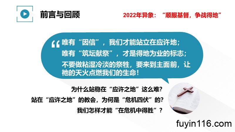 “顺 服 基 督,争 战 得 地”,是主赐给我们2022年的异象。