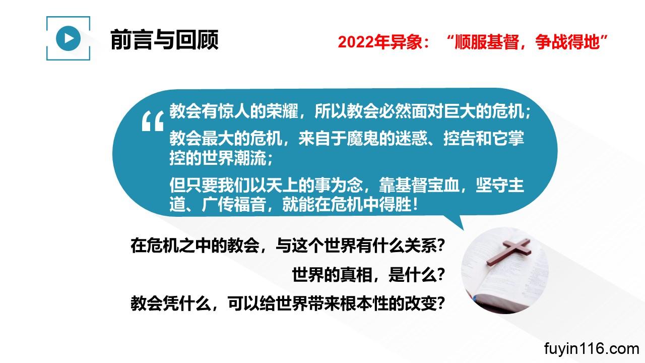 “顺 服 基 督,争 战 得 地”,是主赐给我们2022年的异象。