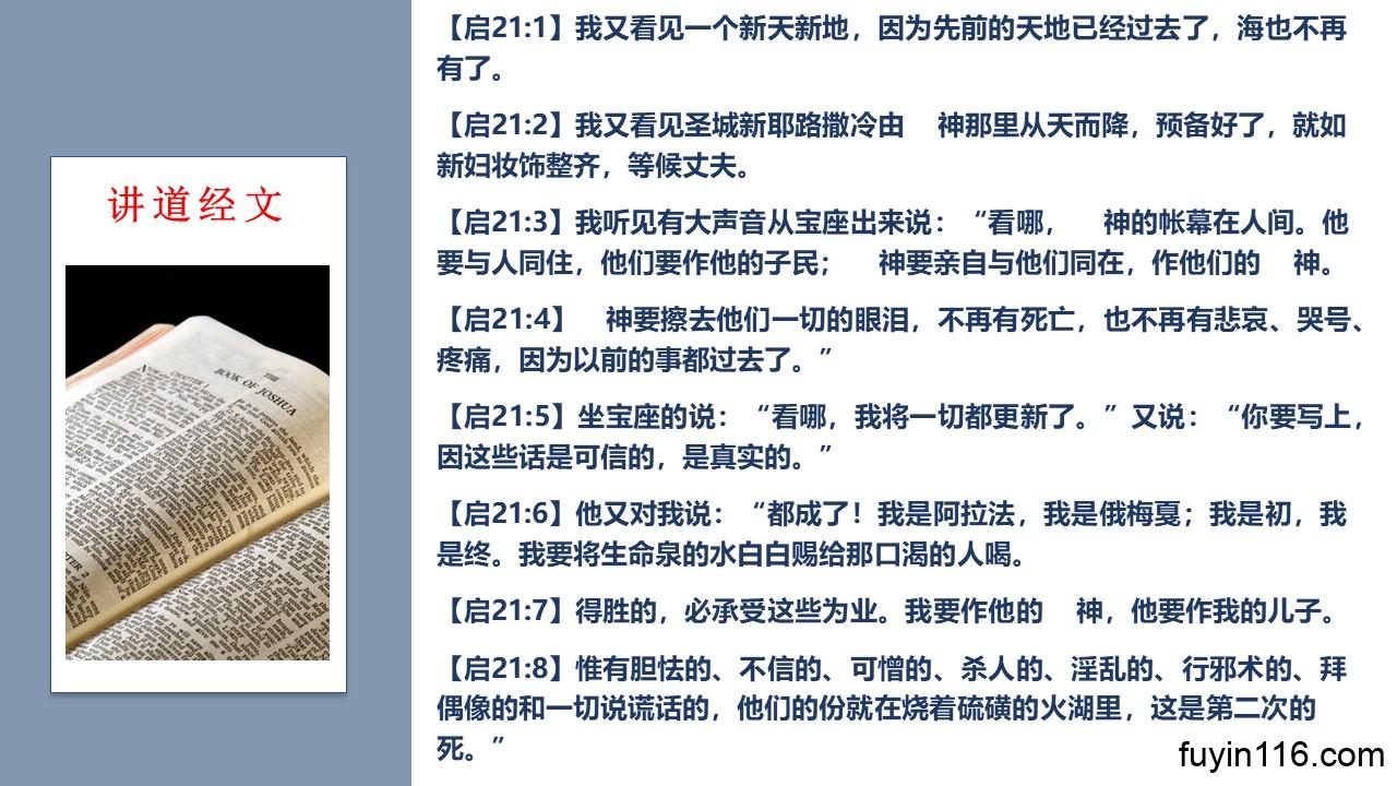 求你赐福我们所讲的这一段《启示录》的圣经真理信息,借着我们主日讲台的信息分享,让你的百姓更认识主的美意,更顺服主的带领。