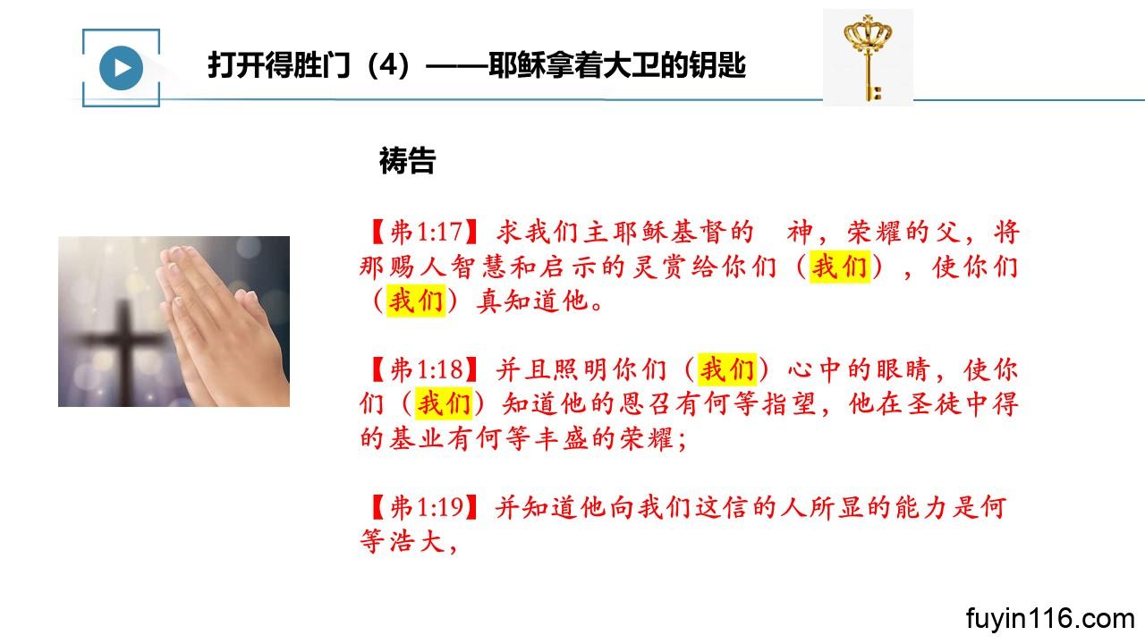 在5月21日,由倩文师母继续分享《打开得胜门》系列