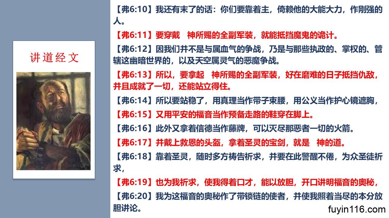 标签: 以弗所书 全副军装 刚强 属灵争战 福音 胆怯