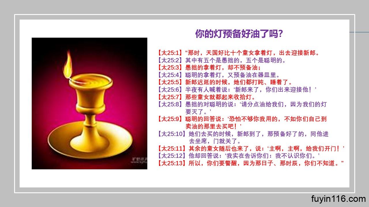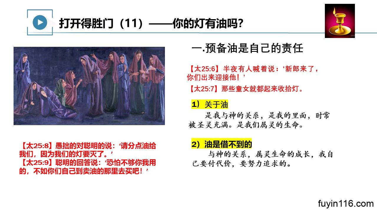 打开得胜门(11)你的灯有油吗?