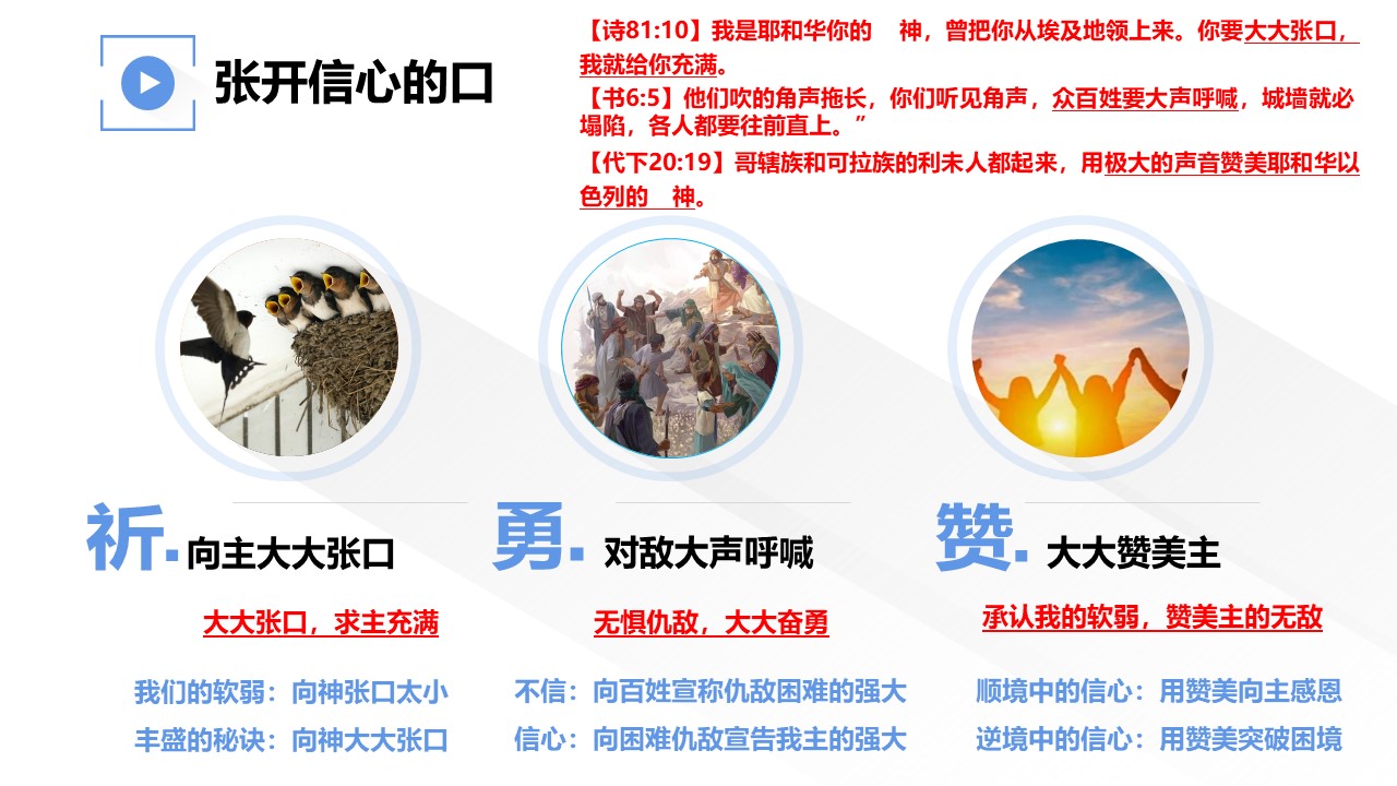 我们张开不同的“信心的口”,其意义和作用分别是什么?
