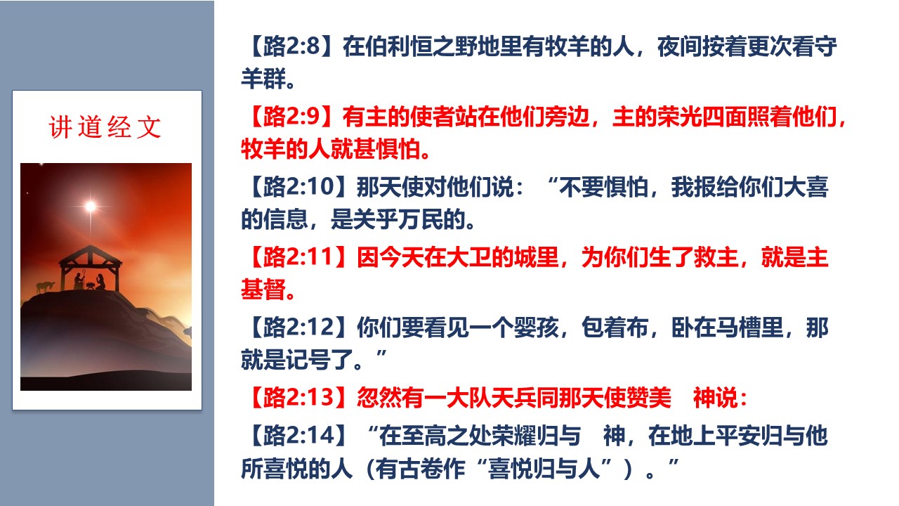 2023年12月24日,既是“平安夜”,也是主日,是我们高举基督,宣扬福音的好日子。