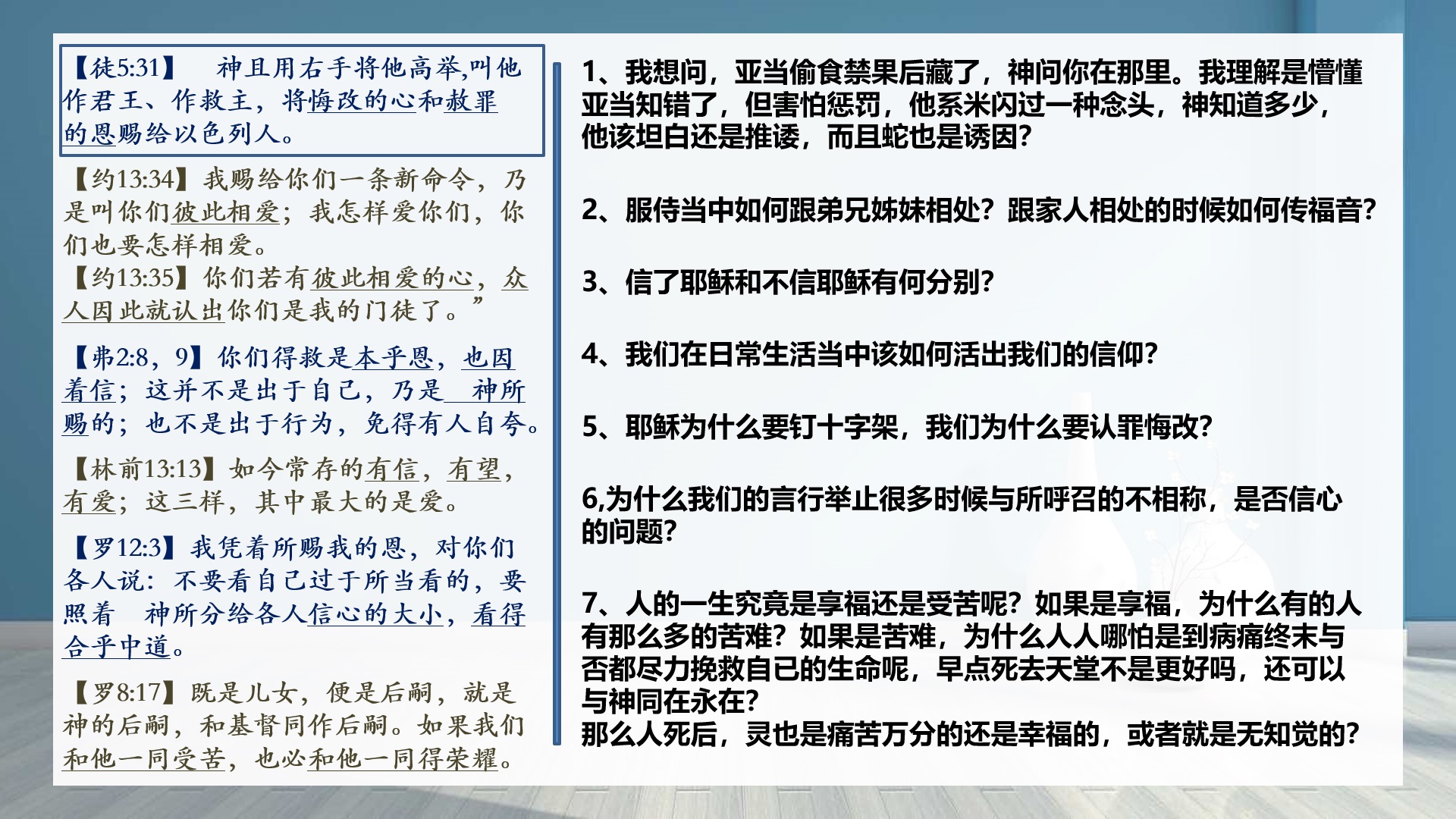 求你赐福我们所讲的《信仰问题解答》的信息,求圣灵膏抹我们的信息,让我们的信息分享,能让更多人认识基督,让更多你的百姓的信心得到坚固。