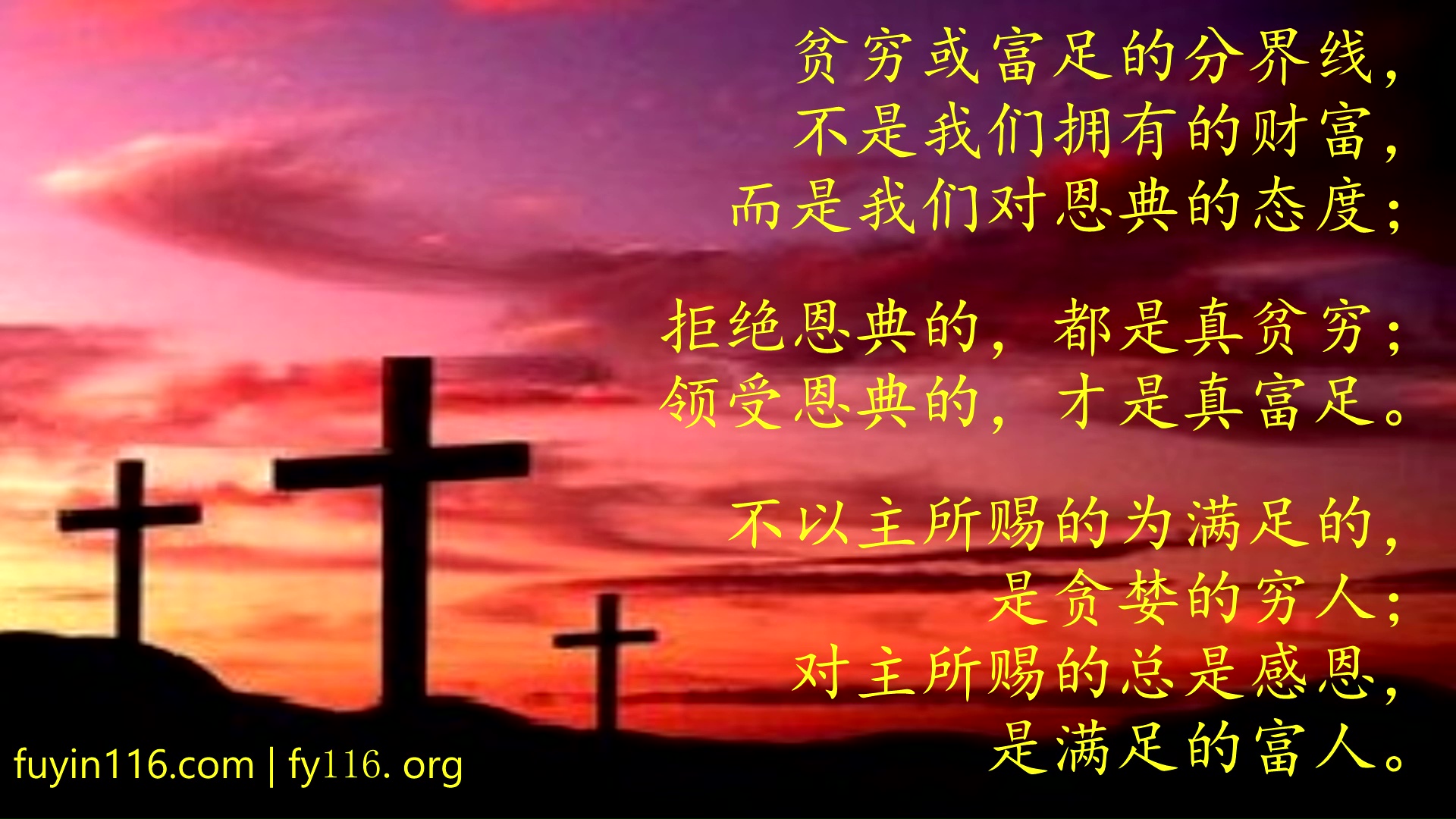 4.对恩典不知足,就是穷人;感恩满足的,才是富人