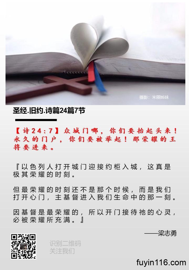 【诗24:7】众城门哪,你们要抬起头来!永久的门户,你们要被举起!那荣耀的王将要进来。