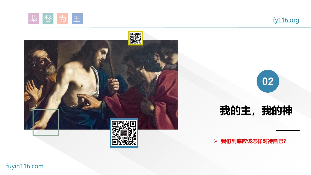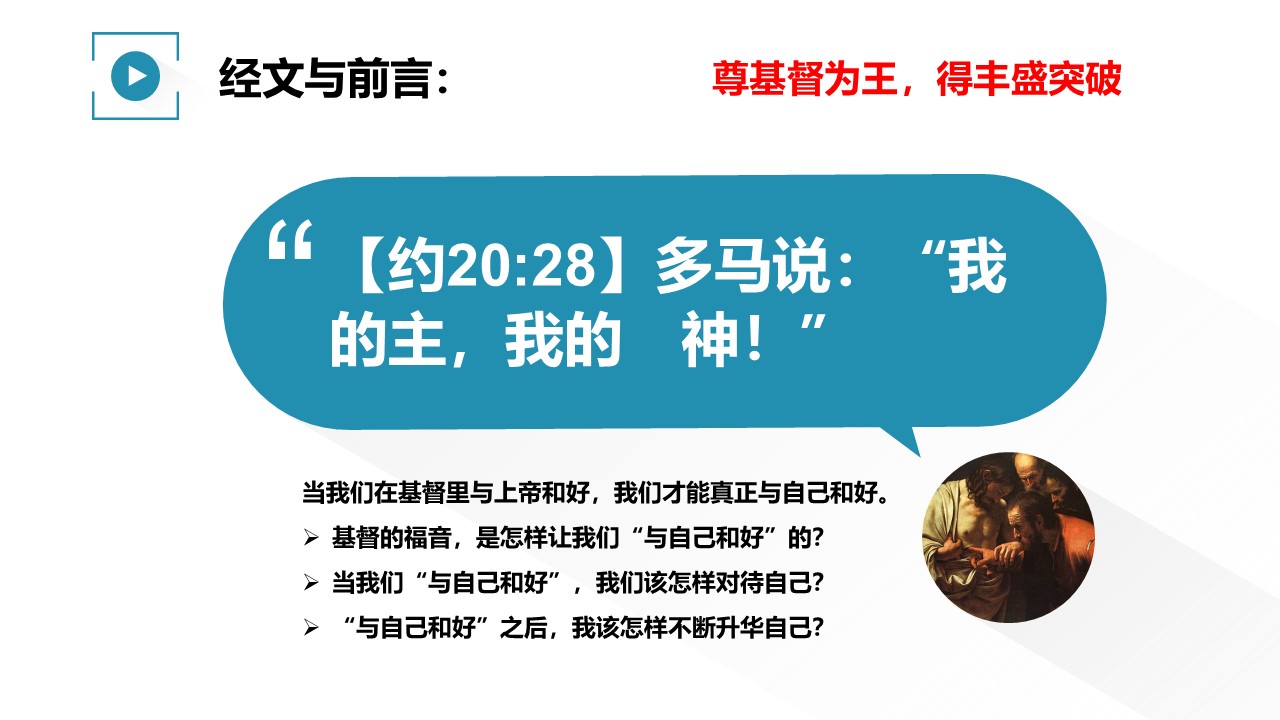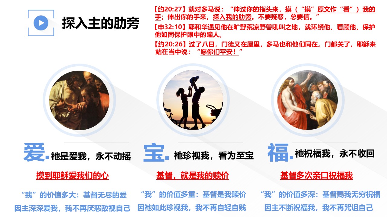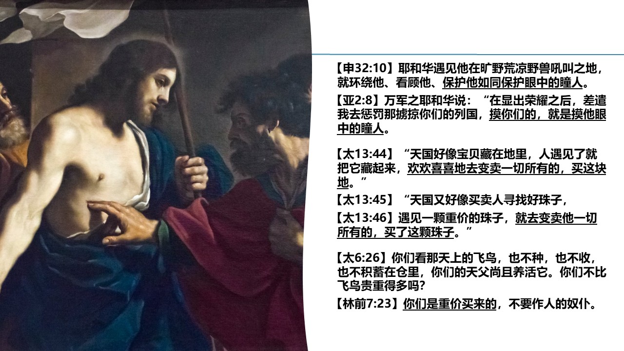 多马探手入主基督的肋旁,惊呼说“我的主,我的神”