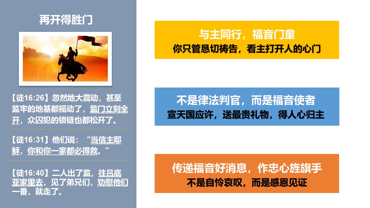 让我们更认识福音的大能,更注重与主同行、与神相交的生命建造,更勇敢为主作见证。