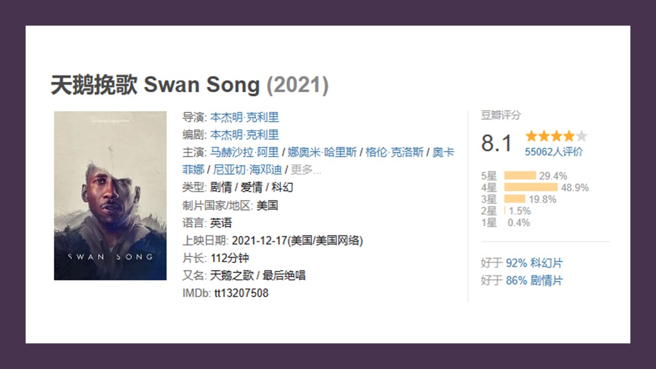 今天,我们看一部2021年上映的电影佳作《天鹅挽歌》。