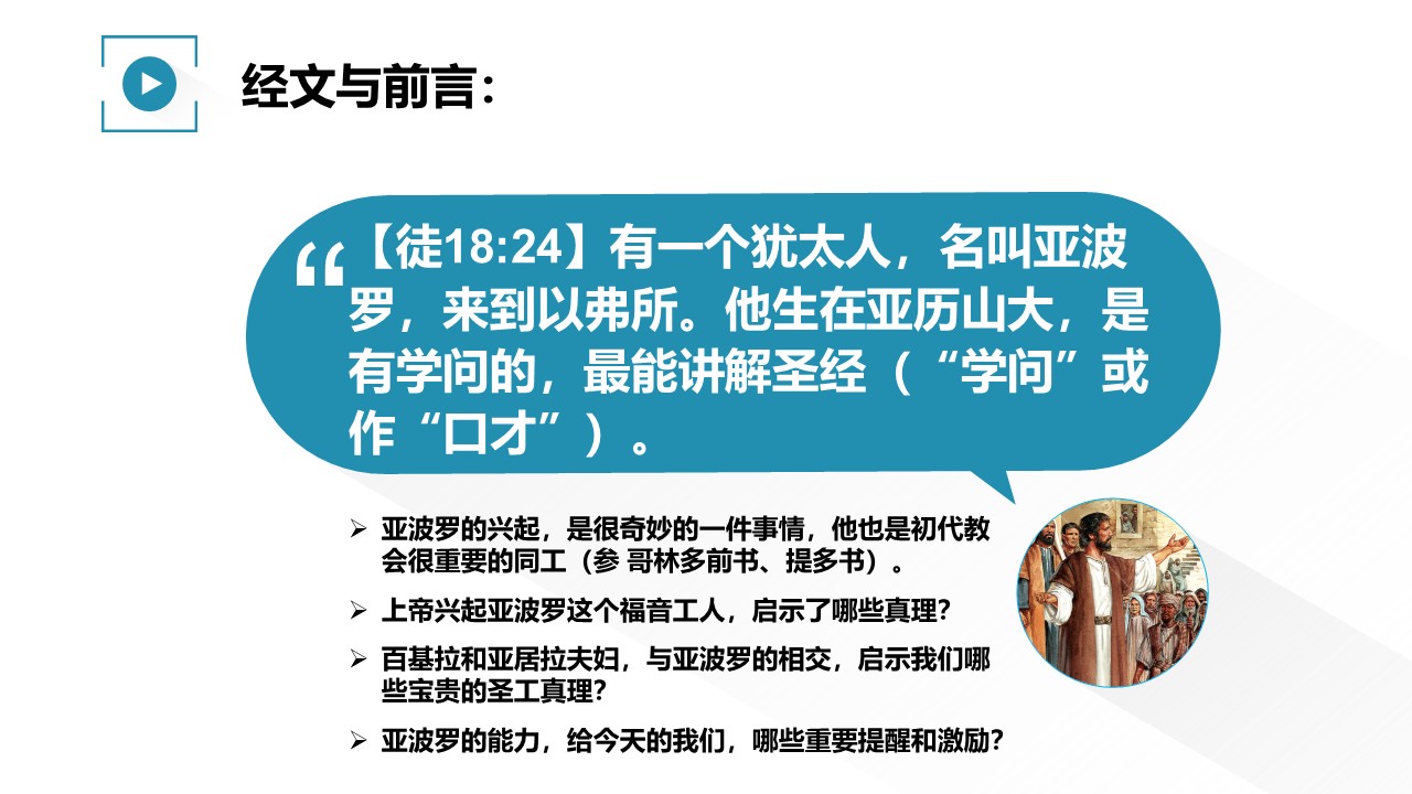 亚波罗的兴起,是很奇妙的一件事情,他也是初代教会很重要的同工(参 哥林多前书、提多书)。