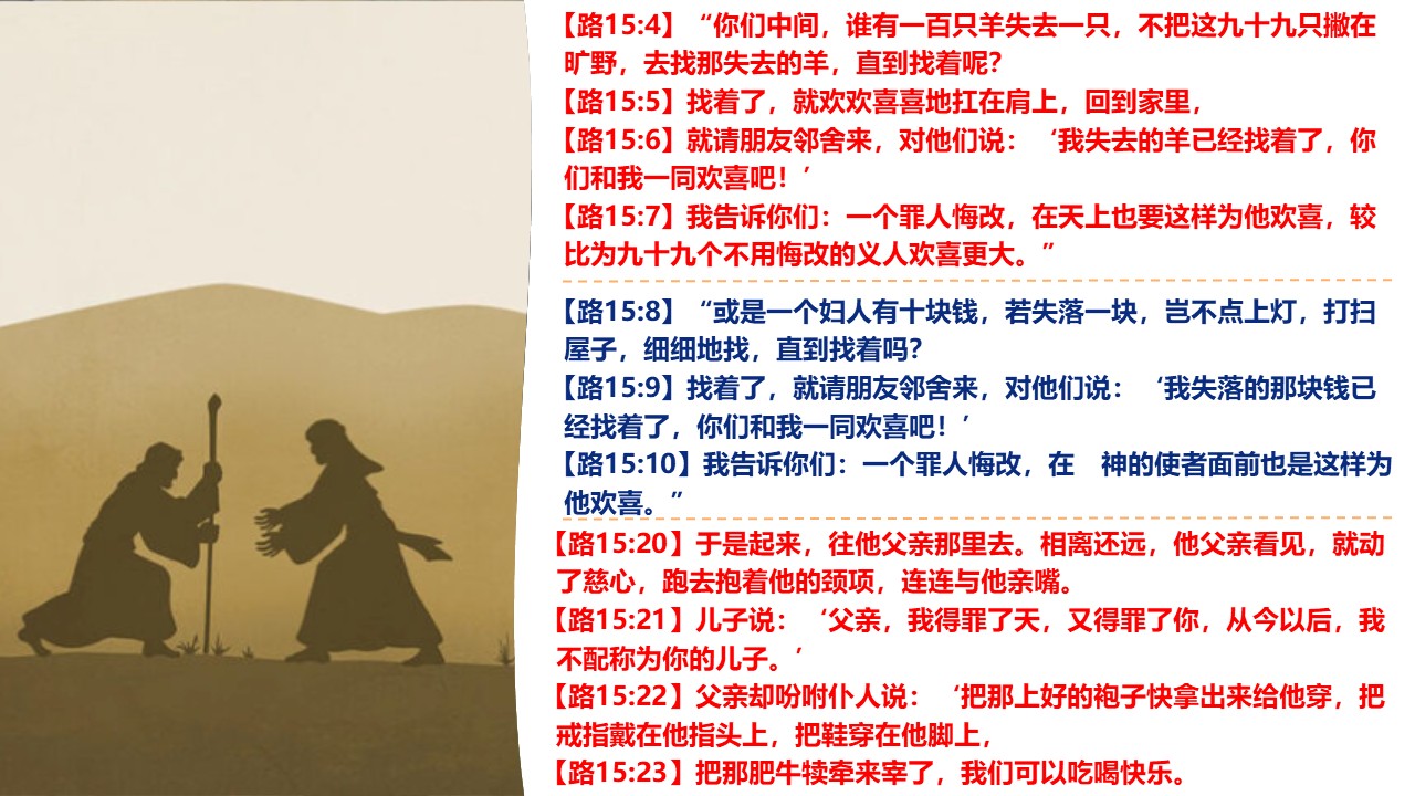从主耶稣讲的悔改的三个比喻中,让给我们去思考: