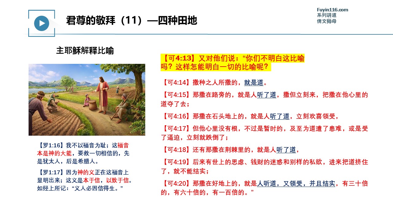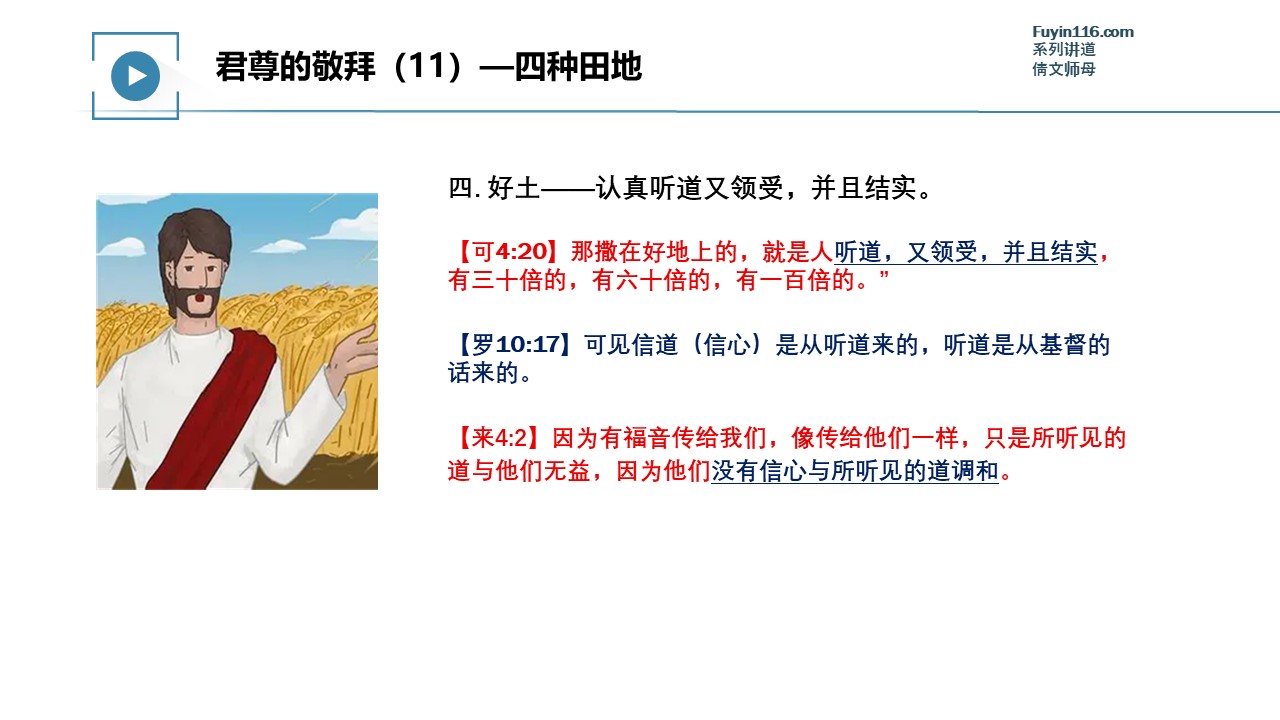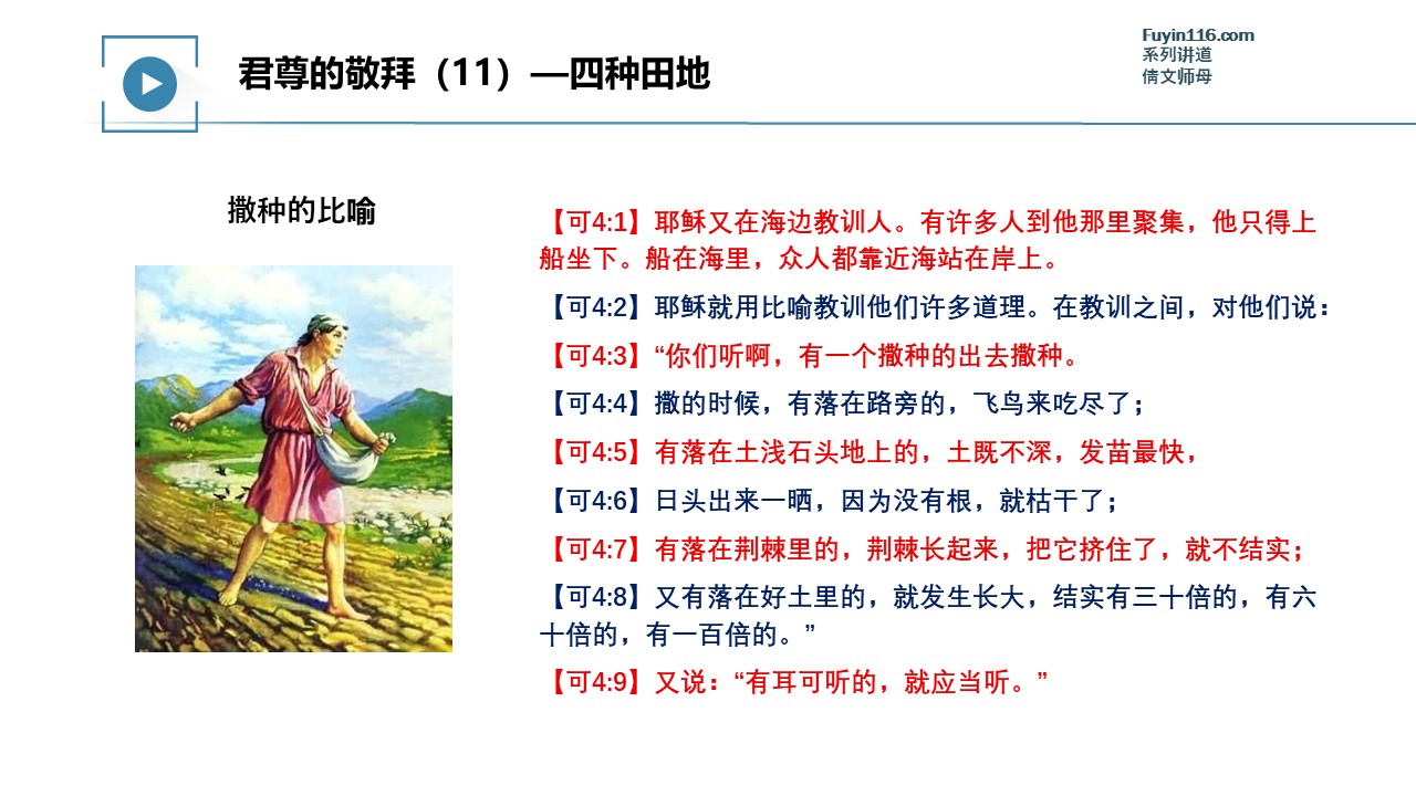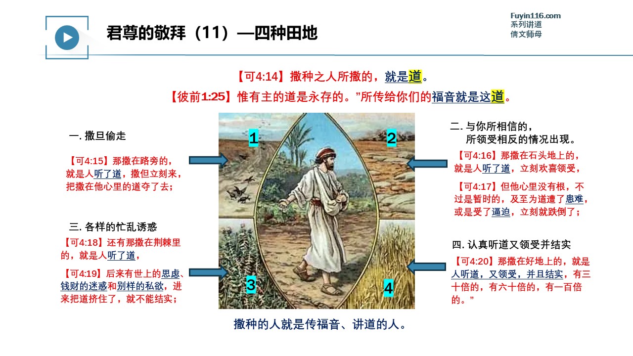 主耶稣讲的“四种田地”的比喻,是十分重要的一个比喻。