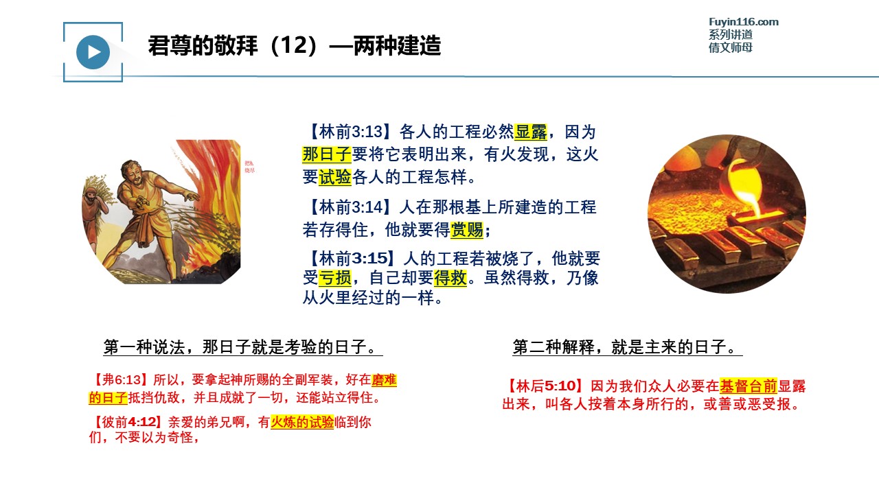 使徒保罗在《哥林多前书》3章,讲到信徒有两种建造。