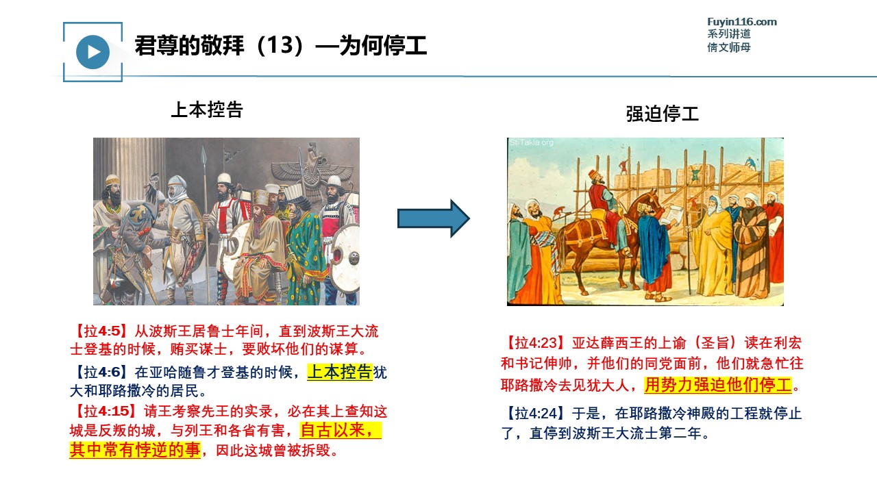 以色列人在建造第二圣殿(所罗巴伯圣殿)期间,有一段时间被迫停工了。