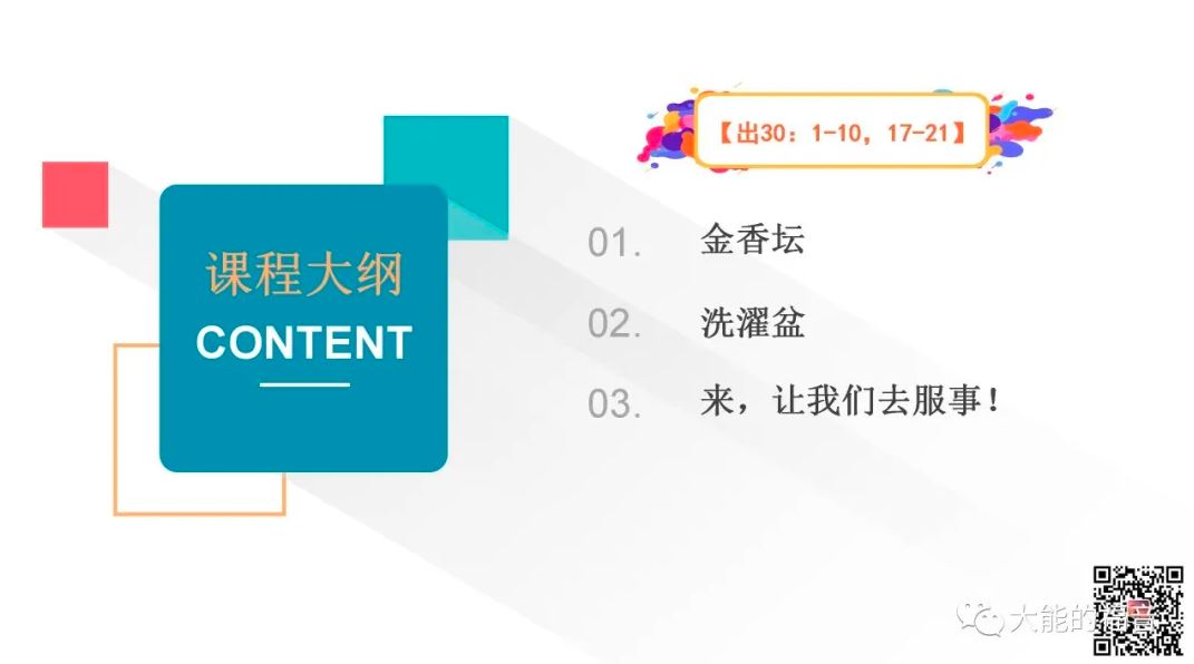 今天分享的是《出埃及记》30章有关“金香坛”和“洗濯盆”的内容。