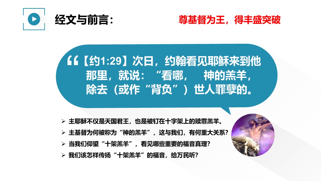 主耶稣不仅是天国君王,也是被钉在十字架上的赎罪羔羊。