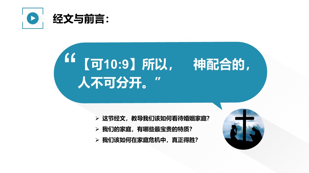 面对法利赛人关于“离婚”的试探,主耶稣回答说“神配合的,人不可分开”