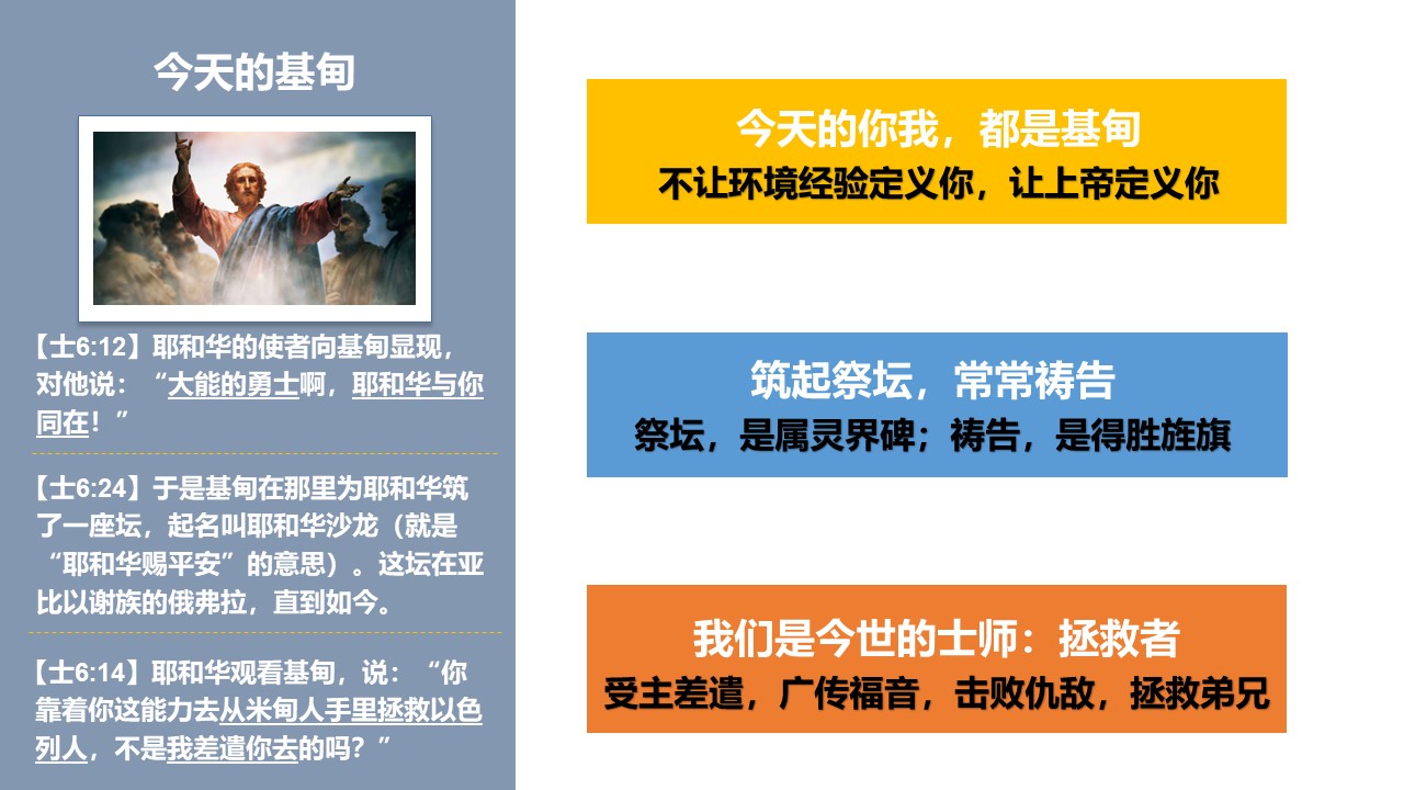 基甸的故事,给今天的我们,哪些重要的提醒和激励?