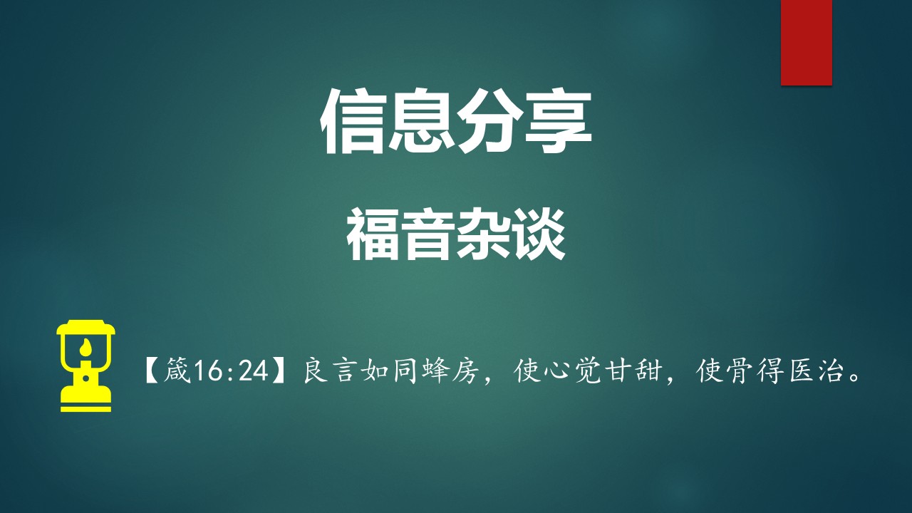让我们更认识福音的大能,更注重与主同行、与神相交的生命建造,更勇敢为主作见证。