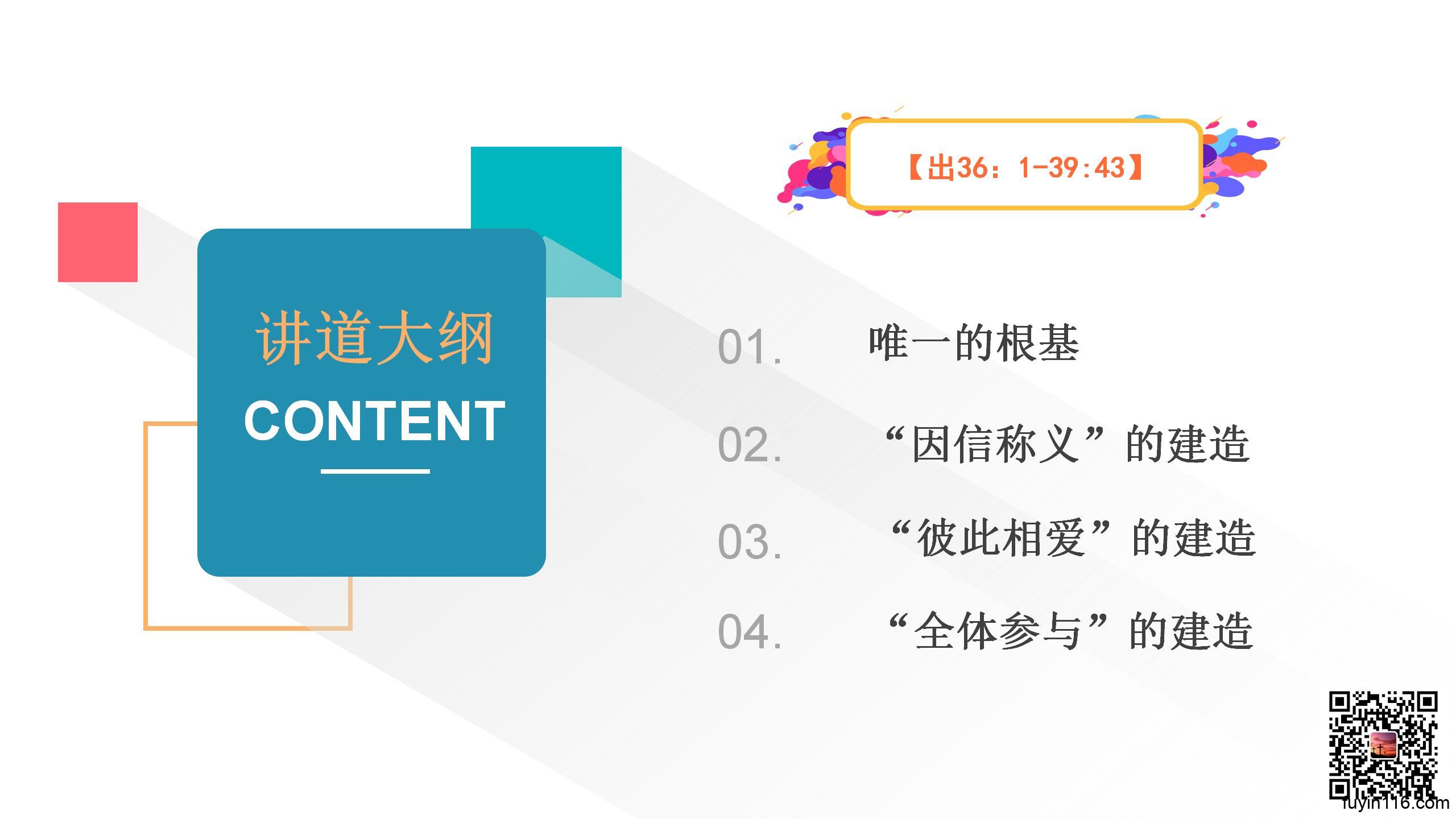 让我们从“会幕的建造”中学到宝贵的福音真理,更爱基督的教会,更凭信心参与教会的建造。