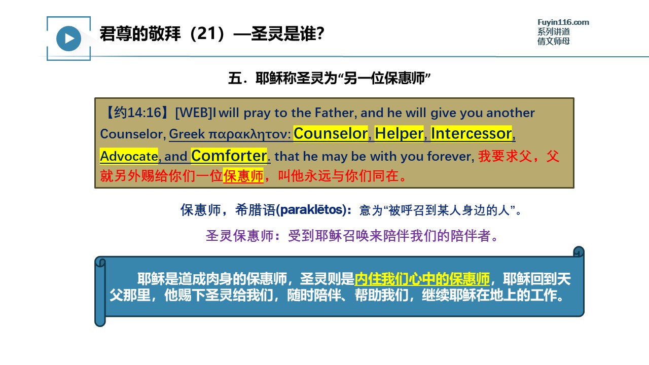 主耶稣称圣灵是“另一位保惠师”,这个称呼,有哪些与我们相关的重要意涵?