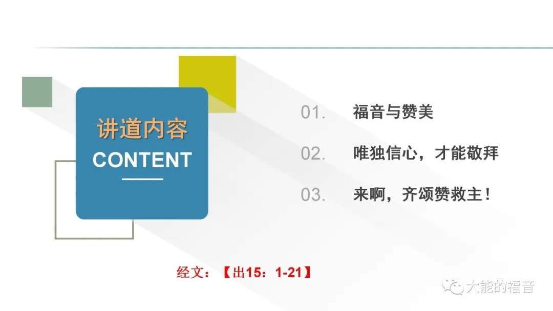 【出15:2】耶和华是我的力量,我的诗歌,也成了我的拯救。这是我的 神,我要赞美他;是我父亲的 神,我要尊崇他。