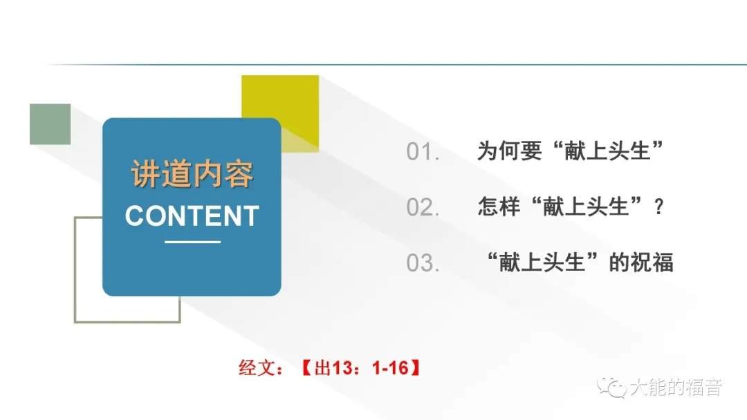 【出13:2】“以色列中凡头生的,无论是人是牲畜,都是我的,要分别为圣归我。”