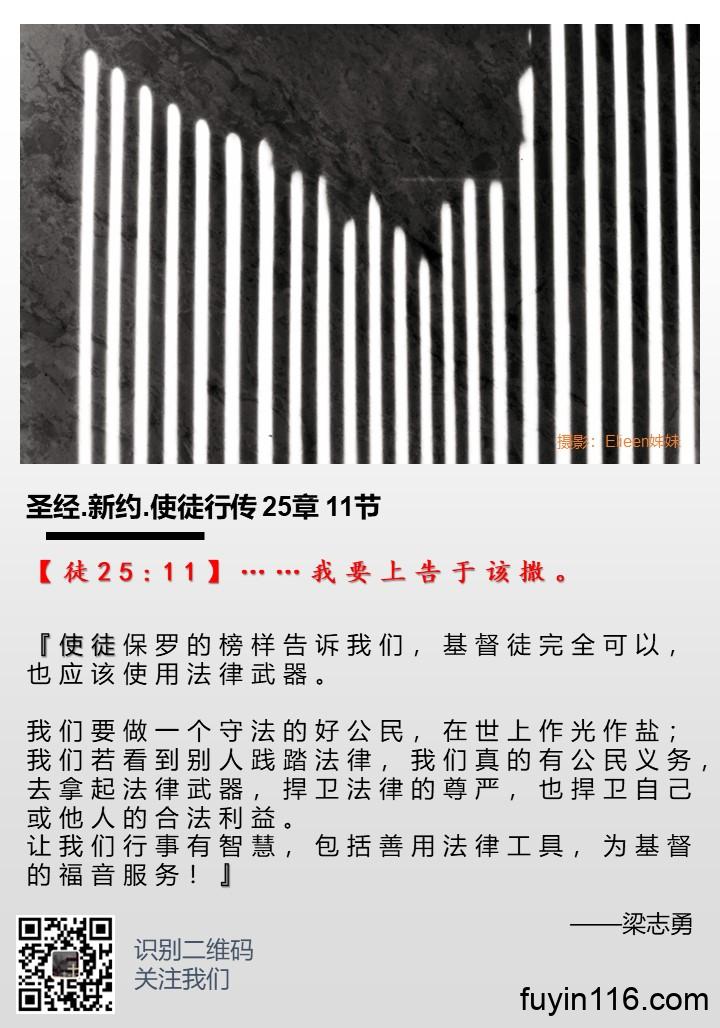 【徒25:11】我若行了不义的事,犯了什么该死的罪,就是死,我也不辞。他们所告我的事若都不实,就没有人可以把我交给他们。我要上告于凯撒。” 《基督徒可以使用法律武器吗?》 作者:梁志勇牧师 朗诵:倩文师母 基督徒可以使用法律武器吗? (梁志勇) 【徒25:11】……我要上告于该撒。   当主耶稣在彼拉多面前受审的时候,祂默然不语,并不上告,因为祂知道这审判乃是出于天父,祂要用这种方式为我们献上挽回祭,所以祂默然不语,因为祂代替我们成为罪,祂的沉默乃是替我们认罪的表现。 但是,当保罗面对不公的…