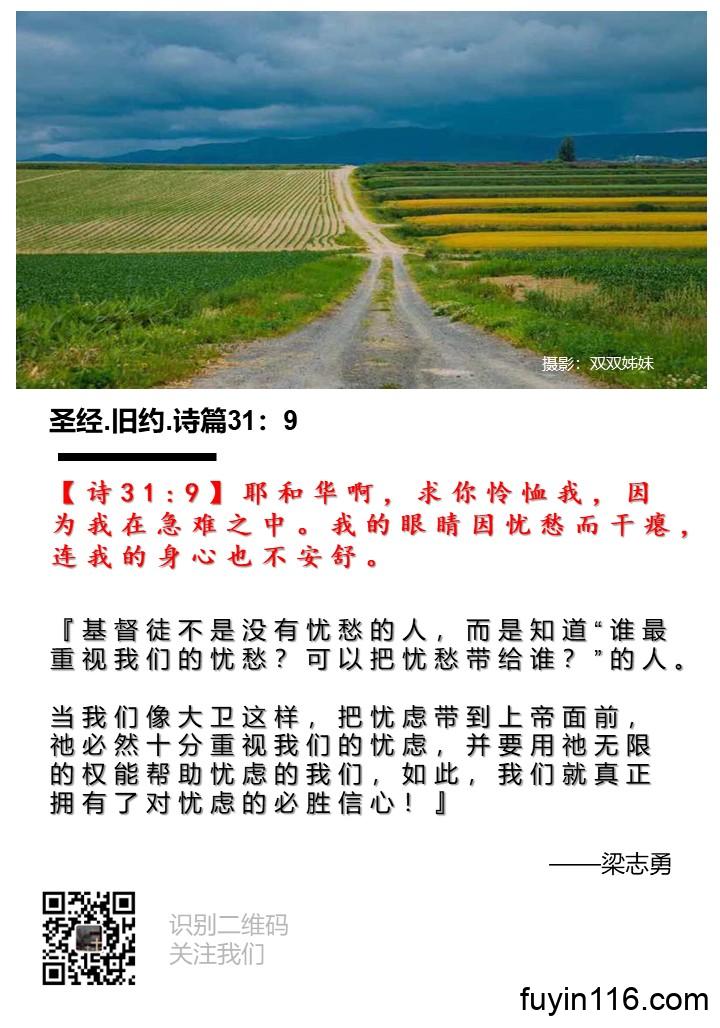 【诗31:9】耶和华啊,求你怜恤我,因为我在急难之中。我的眼睛因忧愁而干瘪,连我的身心也不安舒。 《谁最重视你的忧虑?谁能解决你的忧愁》 作者:梁志勇牧师 朗诵:徐辉姊妹 【诗31:9】耶和华啊,求你怜恤我,因为我在急难之中。我的眼睛因忧愁而干瘪,连我的身心也不安舒。 『基督徒不是没有忧愁的人,而是知道“谁最重视我们的忧愁?可以把忧愁带给谁?”的人。 当我们像大卫这样,把忧虑带到上帝面前, 祂必然十分重视我们的忧虑, 并要用祂无限的权能帮助忧虑的我们, 如此,我们就真正拥有了对忧虑的必胜信心!』 我们…