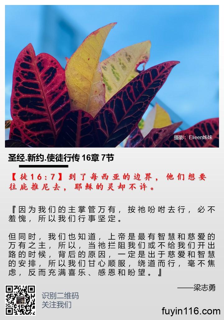 【徒16:7】到了每西亚的边界,他们想要往庇推尼去,耶稣的灵却不许。 《坚定又灵活的福音使者》 作者:梁志勇牧师 朗诵:倩文师母   我们在天上的父,感谢赞美你     感谢你赐给我们《使徒行传》这一卷奇妙的圣经。     求你祝福我们所分享的心得领悟,让我们的文字、让我们的朗诵,造就我们的读者听众的心灵。     让我们就更珍惜你的真理,让我们更感恩你的赐予,让我们更有盼望,让我们的心灵更得滋润,让我们更热心传扬你的福音!     愿荣耀、颂赞、歌唱和赞美,常常从我们心里涌流出来,都归给我…
