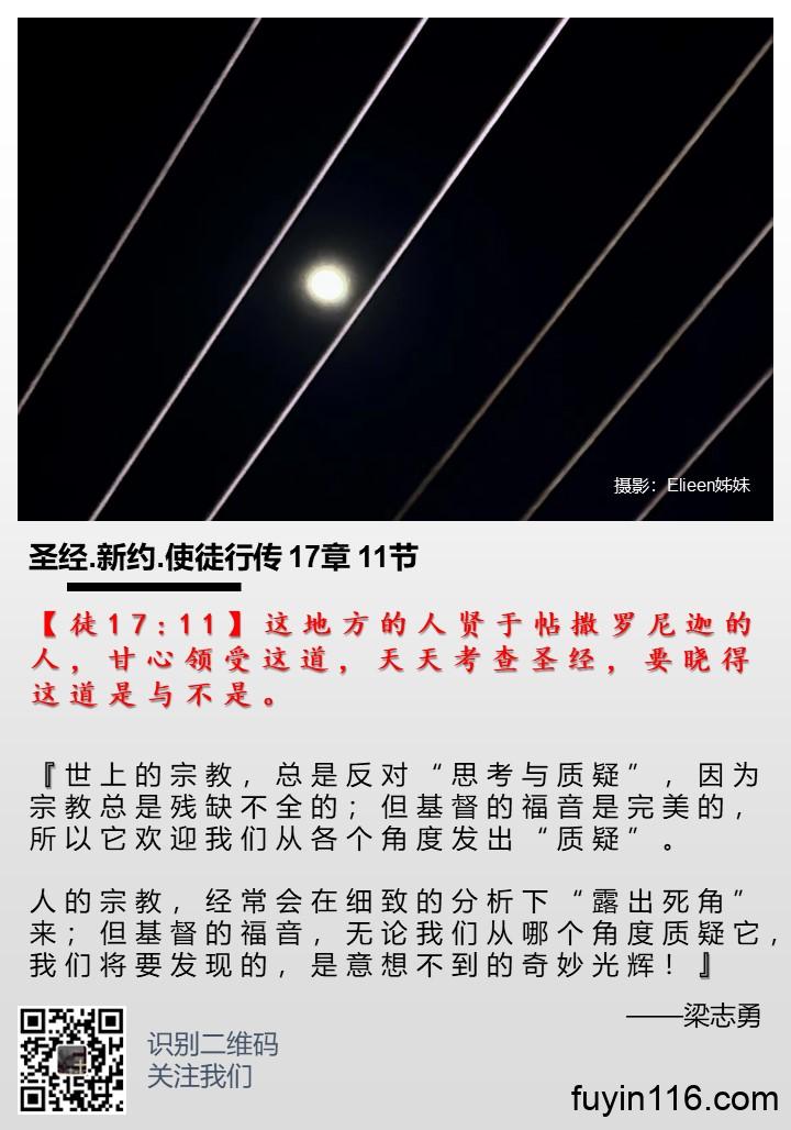 【徒17:11】这地方的人贤于帖撒罗尼迦的人,甘心领受这道,天天考查圣经,要晓得这道是与不是。 《笃信圣经》 作者:梁志勇牧师 朗诵:倩文师母 笃信圣经 (梁志勇) 【徒17:11】这地方的人贤于帖撒罗尼迦的人,甘心领受这道,天天考查圣经,要晓得这道是与不是。 圣灵在这里大大地嘉许庇哩亚的弟兄姊妹,特别赞许他们对圣经的态度,说他们“甘心领受这道”。 但他们是怎样甘心领受圣经真理的呢?他们是否是毫无质疑,照单全收呢? 不是的,他们是“天天考查圣经,要晓得这道是与不是”。 从此,我们就知道,和我们天然以为…