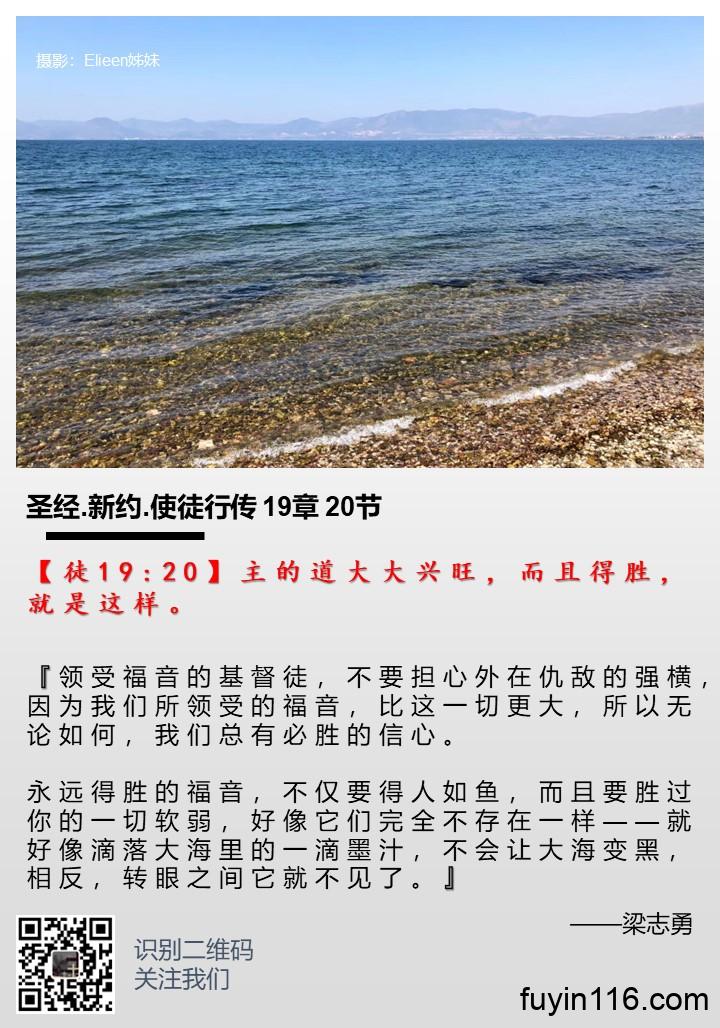 【徒19:20】主的道大大兴旺,而且得胜,就是这样。 《有什么是永远得胜,不会失败?》 作者:梁志勇牧师 朗诵:倩文师母 有什么是永远得胜,不会失败? (梁志勇) 【徒19:20】主的道大大兴旺,而且得胜,就是这样。 在《使徒行传》里,我们不断看到这样的字样“主道大大兴旺,而且得胜”。 其实我们仔细一想,这不是最合情合理的吗? 谁能抵挡造天地的上帝呢? 谁能胜过上帝的膀臂呢?!   所以,我们若问:有什么是永远得胜,不会失败? 我们要在圣经中查找答案,《使徒行传》里多处经文告诉我们: 那永不…