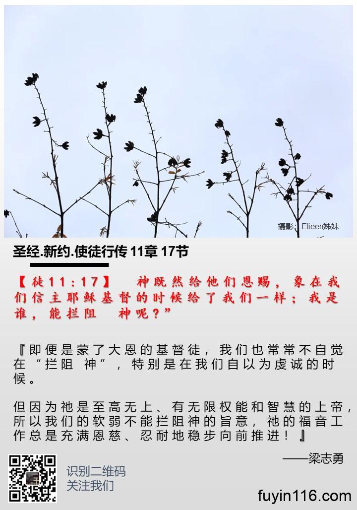 【徒11:17】 神既然给他们恩赐,象在我们信主耶稣基督的时候给了我们一样;我是谁,能拦阻 神呢?” 《我是谁,能拦阻 神呢?》 作者:梁志勇牧师 朗诵:倩文师母 我是谁,能拦阻 神呢? (梁志勇) 【徒11:17】 神既然给他们恩赐,象在我们信主耶稣基督的时候给了我们一样;我是谁,能拦阻 神呢?” 彼得向耶路撒冷教会报告时说的这番话,给我们很多提醒,也给我们很多激励。 首先,我们看到人的软弱,即便是蒙了大恩的基督徒,我们也常常不自觉在“拦阻 神”。 特别是在我们自以为虔诚的时候,我们常常因着宗教的惯…