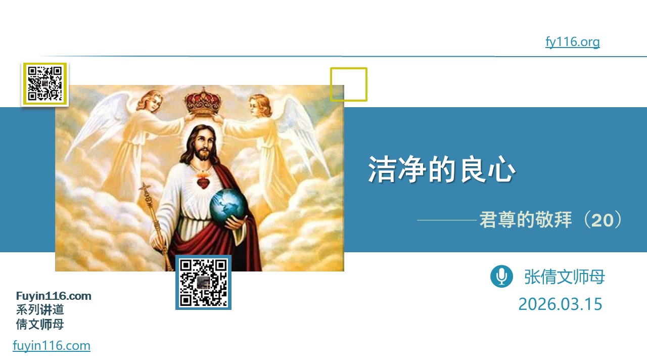 每个人都有良心,良心的重要性,不言而喻。 我们的良心,怎样才能得到安息? 我们的良心,怎样才能得到洁净? 我们还需要认罪吗,到底怎样认罪,才能让良心重新得力? 愿上帝的祝福借着祂的真道,更多地临到每一个认真聆听的灵魂。 欢迎您收听: 《洁净的良心》 更多精彩丰富的内容,尽在lmsmsg.me;欢迎在浏览器里收藏访问我们的网站,不受微信的限制 本文链接: https://lmsmsg.me/z105 您也可以点击下面的链接,重温之前的信息: 《君尊的敬拜系列》 ⚠️⚠️⚠️ 注意 ⚠️⚠️⚠…