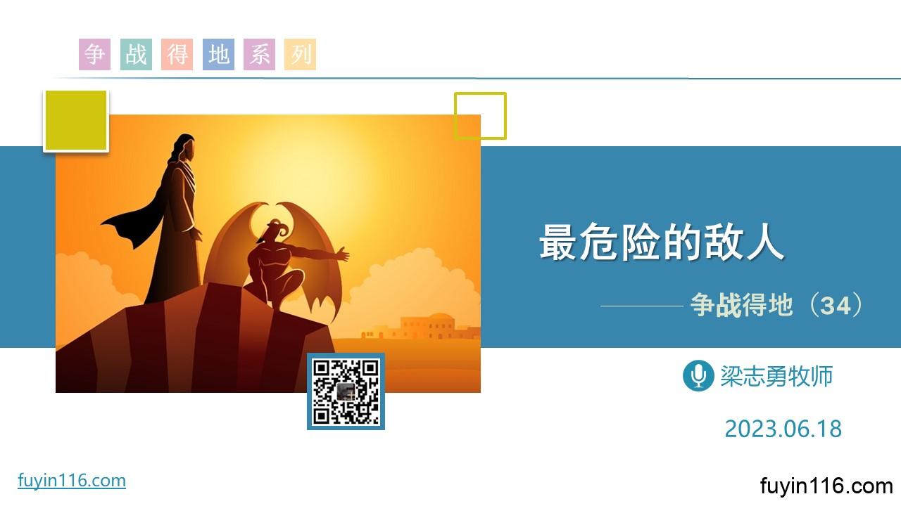 在6月18日的主日,我们继续《争战得地》系列的分享,第34讲: 《最危险的敌人》   这个世界里,最重要的争战,到底是什么? 这个世界里,“最危险的敌人”到底是谁? 谁能战胜这个“最危险的仇敌”? 今天的我们,怎样才能战胜这个可怕的仇敌?   愿上帝的祝福借着祂的真道,更多地临到每一个认真聆听的灵魂。 欢迎您收听: 《最危险的敌人》   您也可以点击下面的链接,重温之前的信息: 《争战得地》系列   点击音频媒体前面的小三角“►”就可以播放 墙外观看: 我们的阿爸天父,感谢赞…