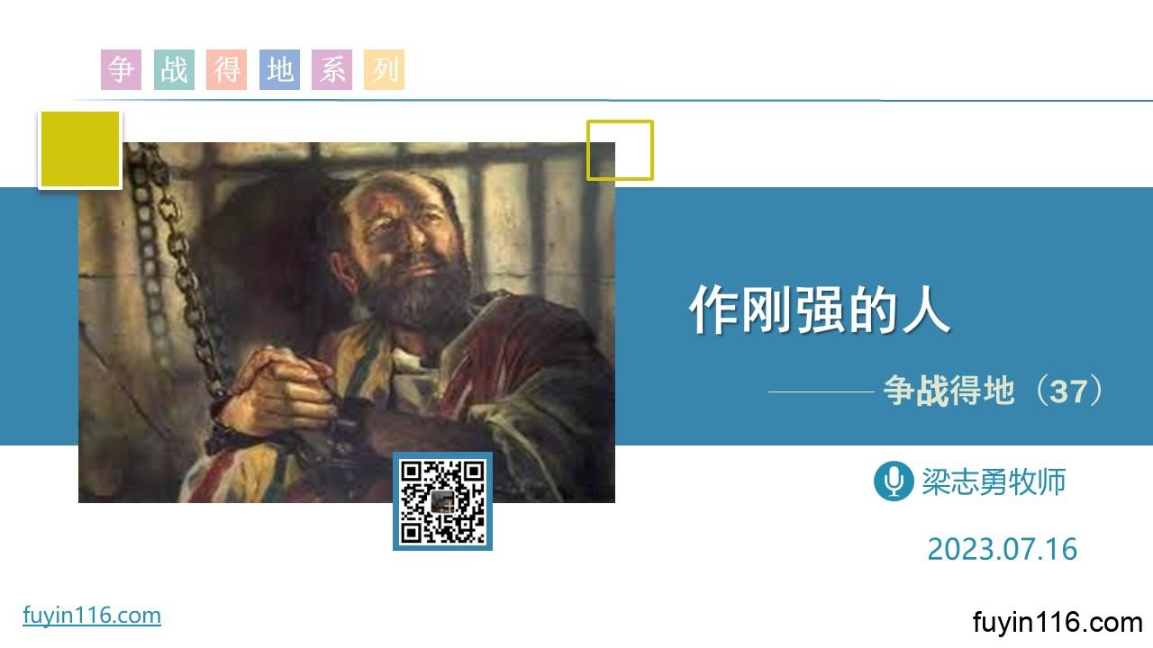 跟随主基督的我们,为什么要作“刚强的人”? 我们怎样才能作“刚强的人”? 为什么我们会“胆怯”? “作刚强的人”和“争战得地”又有什么关系? 愿上帝的祝福借着祂的真道,更多地临到每一个认真聆听的灵魂。 欢迎您收听: 《作刚强的人》 https://lmsmsg.me/0m97   您也可以点击下面的链接,重温之前的信息: 《争战得地》系列   点击音频媒体前面的小三角“►”就可以播放 墙外观看: 我们的阿爸天父,感谢赞美你 感谢你赐给我们《圣经》真理,让我们可以领受你恩典和真理的祝福。 我…