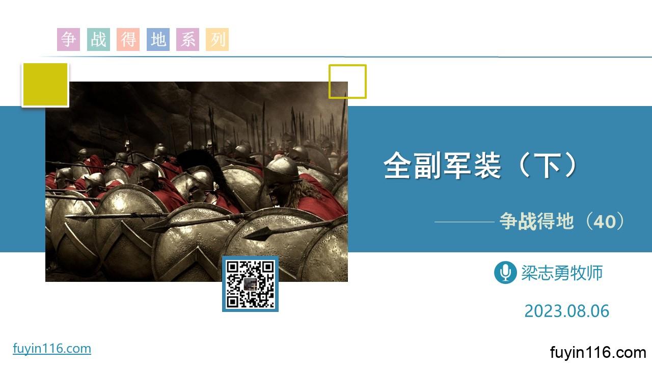 我们为什么要穿戴神的“全副军装”? 全副军装的各部分,都有什么深意? 我们怎样才能穿上“全副军装”?   愿上帝的祝福借着祂的真道,更多地临到每一个认真聆听的灵魂。 欢迎您收听: 《全副军装》 https://lmsmsg.me/ensx   您也可以点击下面的链接,重温之前的信息: 《争战得地》系列   点击音频媒体前面的小三角“►”就可以播放: 永久观看高清版: 我们的阿爸天父,感谢赞美你 感谢你赐给我们《圣经》真理,让我们可以领受你恩典和真理的祝福。 我们特别…