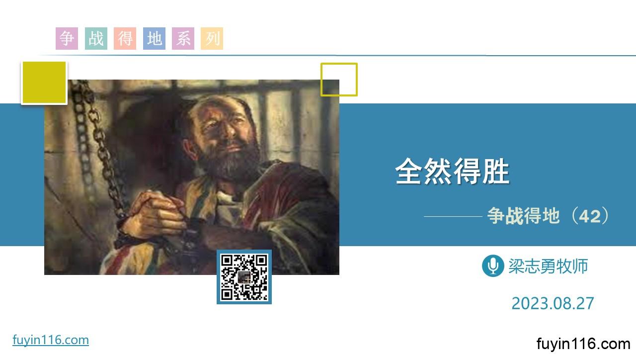 欢迎收听《争战得地》系列的最后一讲的分享: 《全然得胜》 在全副军装的经文中,保罗两次请求为他放胆讲明福音的奥秘而祷告。 福音的奥秘,和“全然得胜”的确据有何关系? 福音让我们看见了什么,以至于我们有信心可以“全然得胜”? 我们该做些什么,来获得“全然得胜”?   愿上帝的祝福借着祂的真道,更多地临到每一个认真聆听的灵魂。 欢迎收听: 《全然得胜》 https://lmsmsg.me/zqy5   您也可以点击下面的链接,重温之前的信息: 《争战得地》系列   点击音频媒体前面的…
