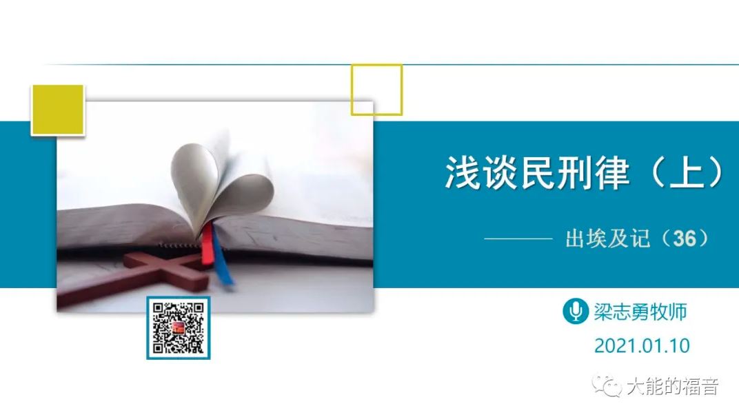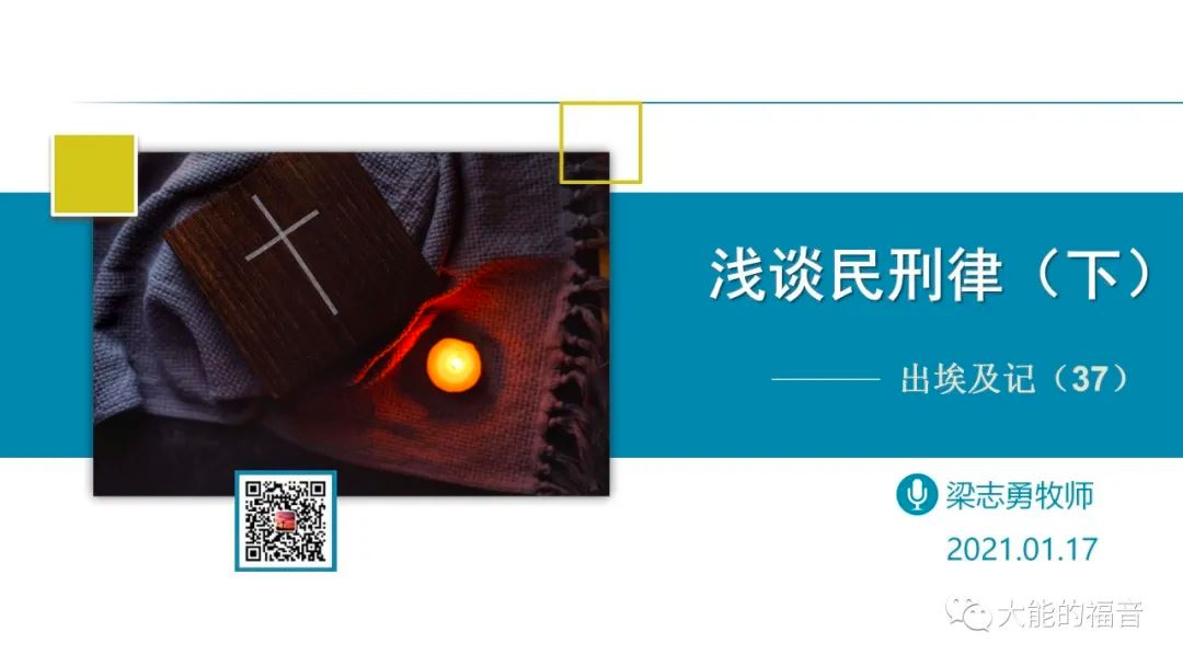 【出21:1】“你在百姓面前所要立的典章是这样: 今天是2021年的第二个主日,我们继续分享《出埃及记》的信息。 1)你知道,上帝的律法可以分为哪三大部分吗? 2)上帝赐下“十诫”道德律之后,为何还要赐下“民刑律”呢?上帝赐下民刑律的三大目的 是什么? 3)为什么我们说上帝赐下的民刑律是“最好的民刑律”,“最公义的民刑律”? 4)民刑律里隐含的救赎性,对我们有什么意义?(参相关文章:《你甘心做一个可悲的奴仆吗?》 请听我们01月10日的讲道信息: 主耶稣基督,感谢赞美你 感谢你赐给我们《圣经》真理,你的真理能使人得…