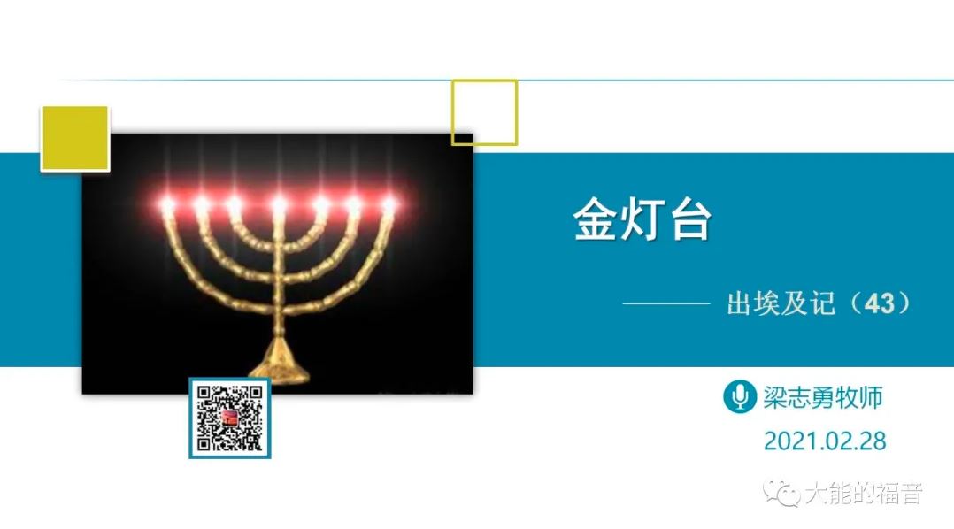 【出25:31】“要用精金作一个灯台。灯台的座和干与杯、球、花都要接连一块锤出来。 相关文章: 《谁能让上帝满足?》 今天分享的是《出埃及记》25章31-40节有关“金灯台”的内容。 请大家带着以下的问题思考听这篇讲道的录音,得最大的益处: 1)金灯台的设立,表明我们有哪些重要的需求呢? 2)金灯台,与主基督有什么关系? 3)金灯台,与基督的教会有什么关系? 请听我们02月28日的讲道信息: 主耶稣基督,感谢赞美你 感谢你赐给我们《圣经》真理,你的真理能使人得自由,你的真理也能使我们成圣。 求主祝福我们每一个听众,…
