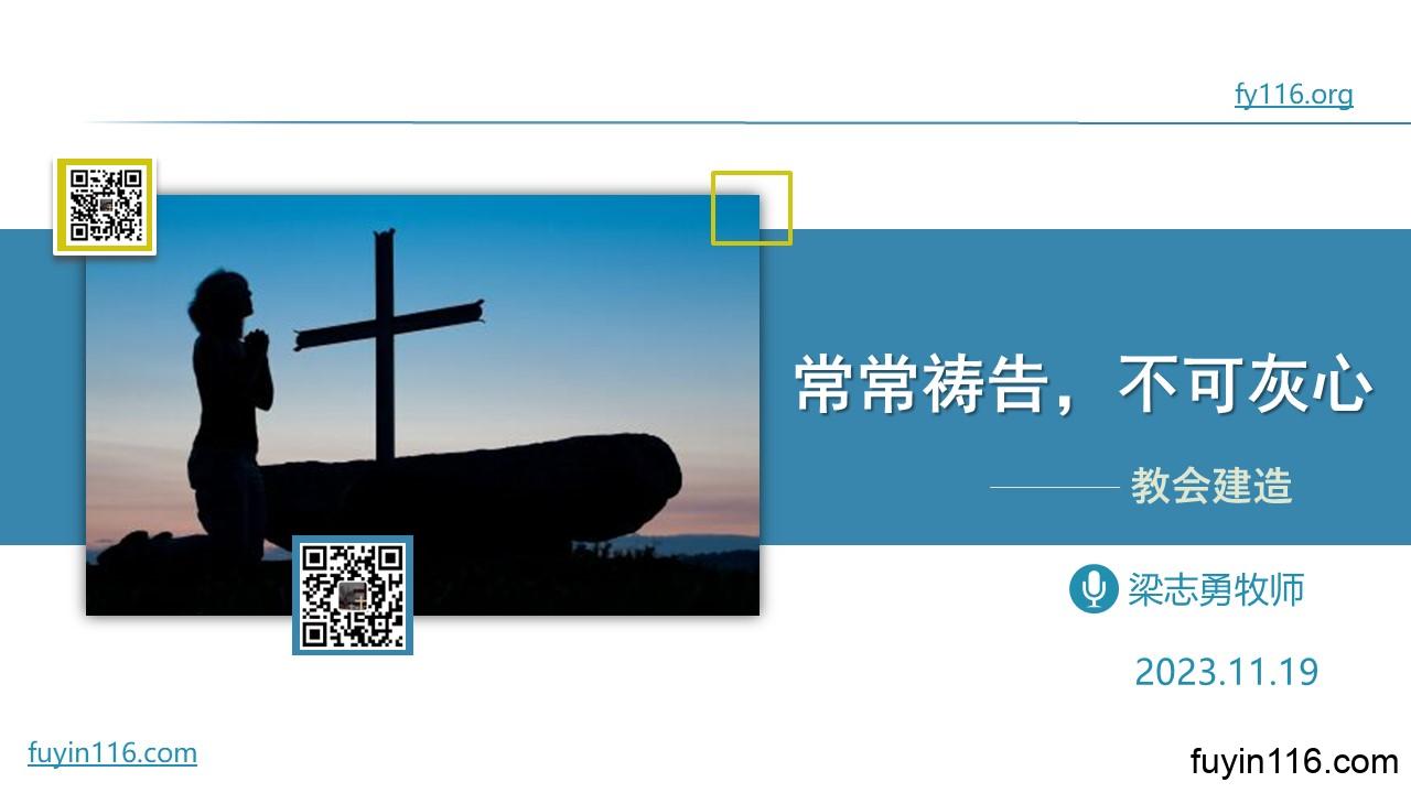 关于祷告,主耶稣讲了一个“穷寡妇和不义的官”的比喻。 关于祷告,这个故事给我们哪些重要的启发和提醒? 我们的主,和不义的官,有何区别? 我们怎样才能不灰心,有信心? 愿上帝的祝福借着祂的真道,更多地临到每一个认真聆听的灵魂。 欢迎您收听: 《常常祷告,不可灰心》 https://lmsmsg.me/l7fi   您也可以点击下面的链接,重温之前的信息: 《教会建造》系列   点击音频媒体前面的小三角“►”就可以播放 墙外观看(欢迎订阅我们的频道): 我们的阿爸天父,感谢赞美你 感谢你赐给我…