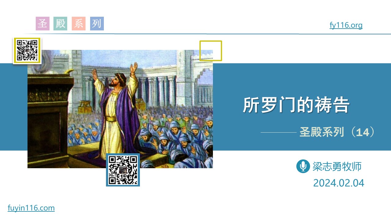 【出34:23】你们一切男丁,要一年三次朝见主耶和华以色列的 神。   完整讲道:《圣殿系列(14)所罗门的祷告》   本文链接: https://lmsmsg.me/wziz